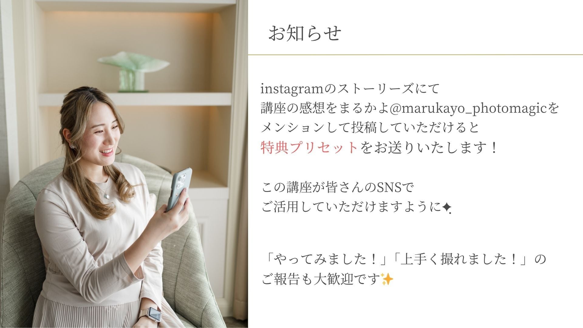 \プロのコツが学べる!/ SNSフォトマジックレッスン(動画講座)